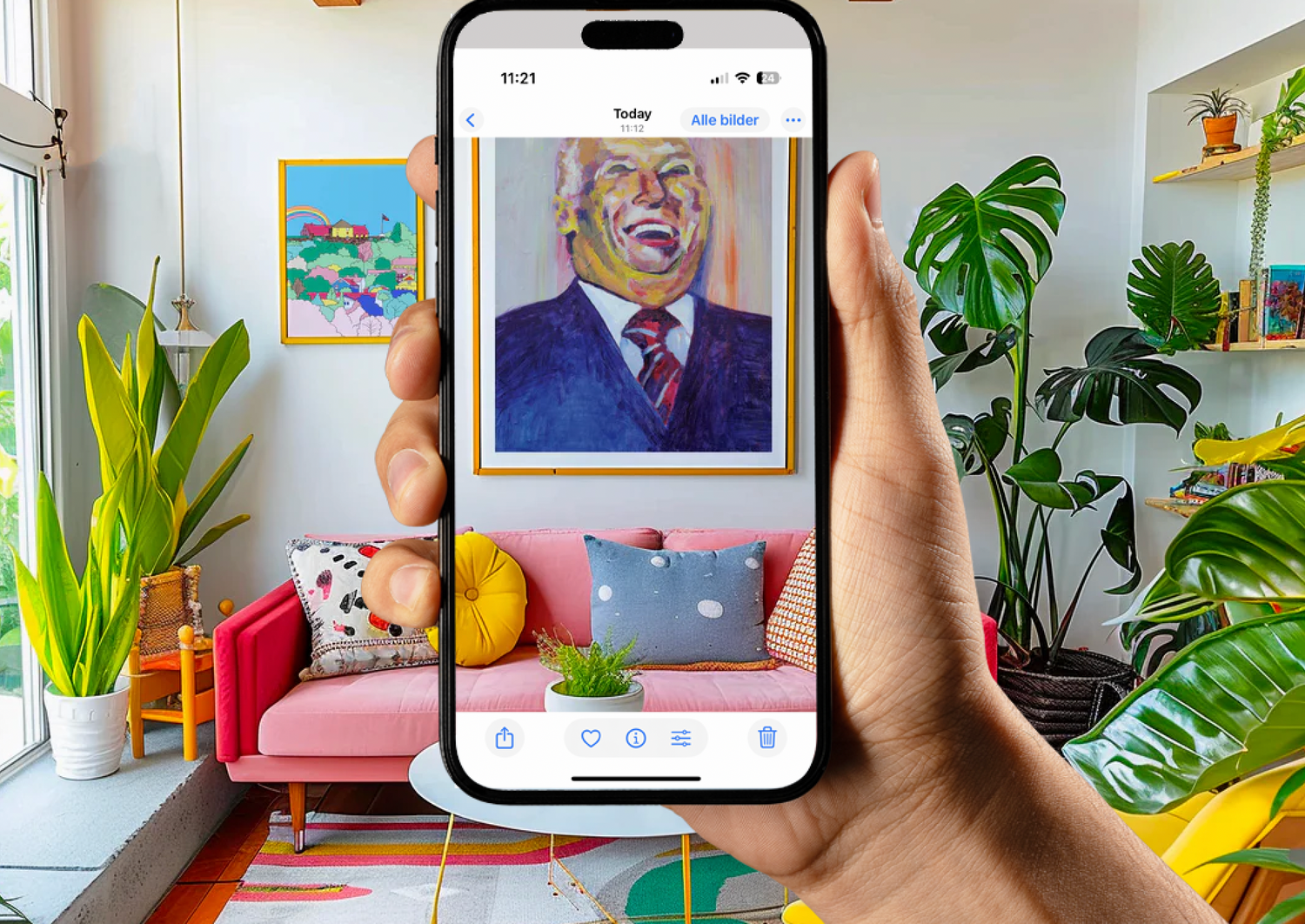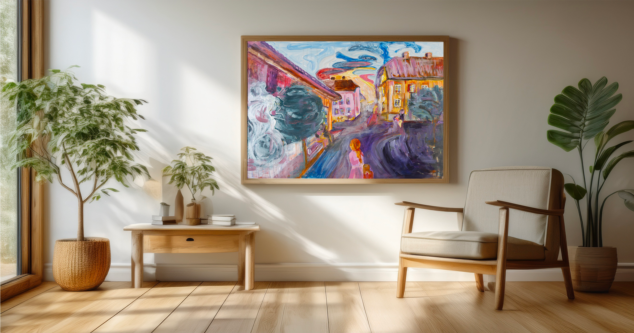 Velg et fargerikt kunstverk, last opp et bilde av rommet ditt, og se det på veggen med et klikk. Ingen flytting av møbler nødvendig!