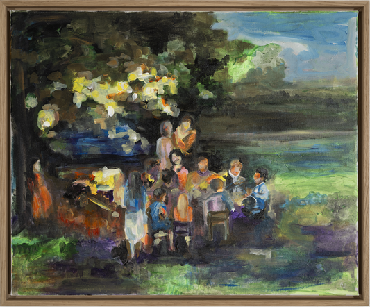 Italia – Originalt akrylmaleri om familie, vennskap og varme italienske sommerkvelder