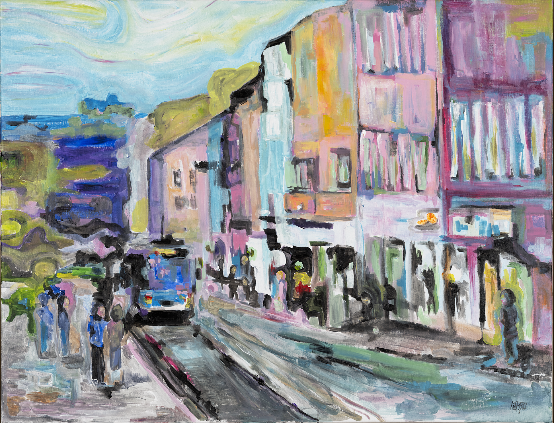 Motivet springer ut fra innflytterens blikk: de første dagene i storbyen, fascinasjonen av alt som rørte seg, og ikke minst den ikoniske blåtrikken som alltid fanget oppmerksomheten. Formen, fargene og rytmen i byen ble til daglige impulser – nye mennesker, nye veier, nye valg. Dette kunstverket fanger akkurat den følelsen: energien, nysgjerrigheten og kjærligheten som vokser frem når et sted blir betydningsfullt.